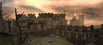 城の前に刺さったままになっている剣。 城の周辺はこんなのがいっぱいです。 |