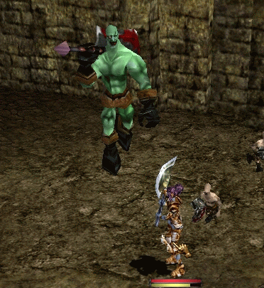 デカドンダンジョンの二階にいるマスターカーバル。 たくさんのガードハルファーを従えて、 デカドン族の秘宝を守っているとかいないとか。 でっかい剣が恐ろしげです。 |