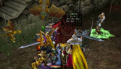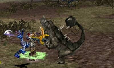 いっぱい集まりました。総勢15人以上の大パーティ。 そこはまさに戦場。響き渡る恐竜の声、武器の音。 もう恐竜なんか素手でもいけちゃうね! え!?本気ですか? |